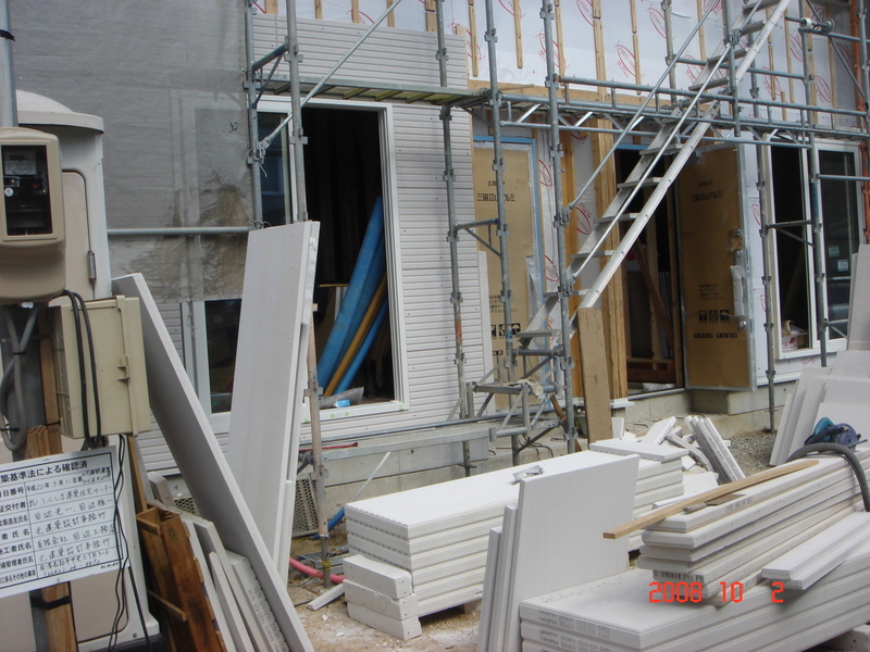今日も良い天気に恵まれ、少し前から始まっていた中央の外壁(パワーボード)工事も順調に進みました