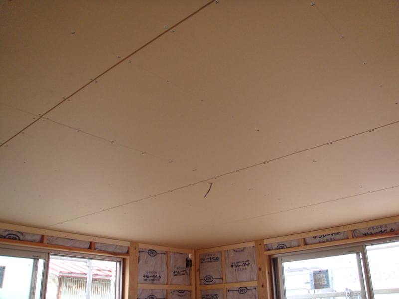 本日は2階のボード貼りがメインです(上の写真が2階廊下で、下の写真が2階居室の天井です)