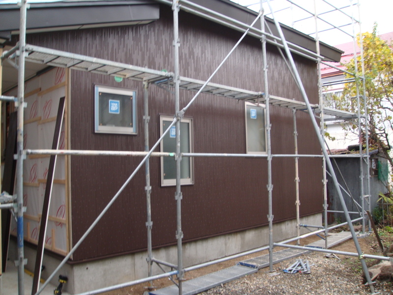 外部のサイディング貼りも北面と西面が終わり、南面(正面)と東面を貼れば完成です(写真下は北面です)
