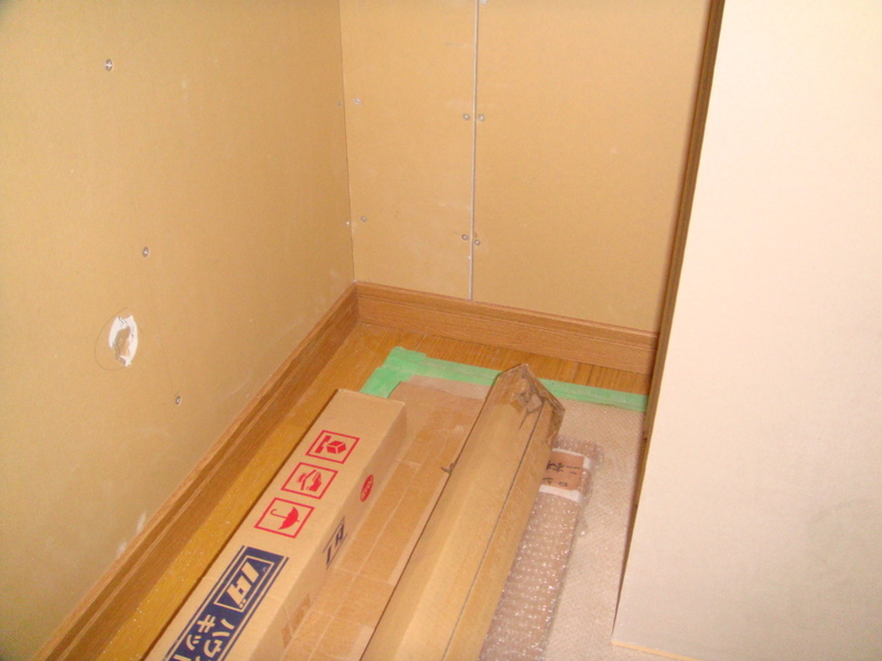廻り縁や巾木が付けられると、その部屋はほぼ大工仕事が終わった事を意味し、この後はクロス屋さんの仕事になります![]()