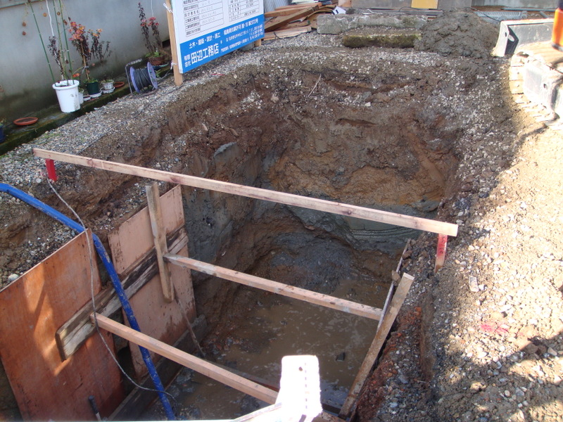 そんな寒い一日でしたが、坂下町A様邸では昨日から設備屋さんが入って、浄化槽を設置する為の穴を掘ってました