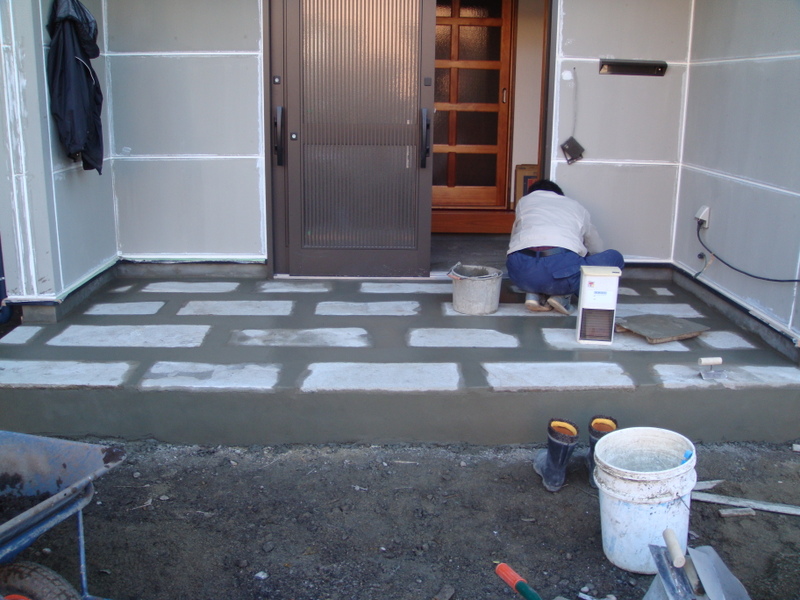 一箕町のI様邸では左官屋さんが玄関ポーチの仕上げをしてました![]()