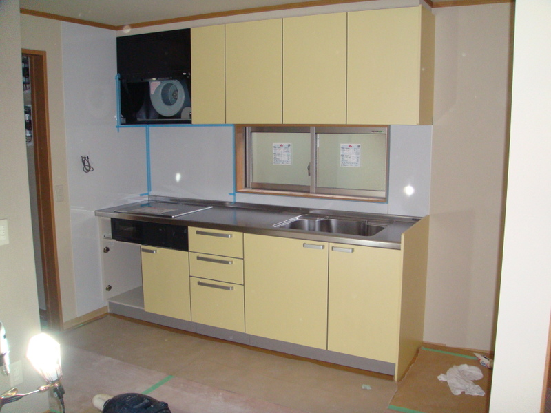 取り付けられたキッチンはクリナップ製で色はプレーンイエローなのですが、明るくてとても良い色だと思いました(写真で見るよりも実物の方が良い色です)