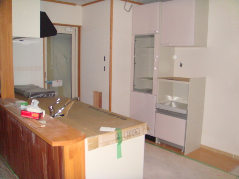 中央では残っていたもう一つのキッチンと収納ユニットの取り付けも無事完了しました![]()