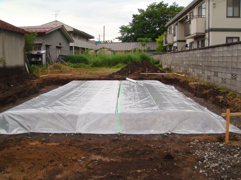 捨てコンは基礎の墨を出す為の役割と、基礎のベースになる役割がありますが、ある程度平に均してあれば問題ないので、雨が降ってもそれ程影響はありません