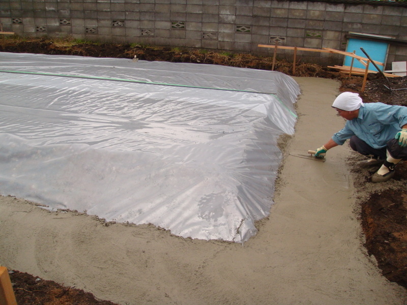 捨てコンの打設が終わってすぐに雨が降り出してきて、ギリギリのタイミングで終える事ができてホッと一息です