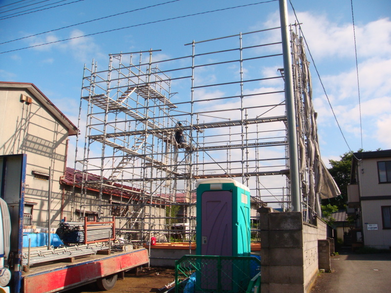 行仁町S様邸新築工事も先行足場が組み立てられ、いよいよ明日からは建て方が始まります