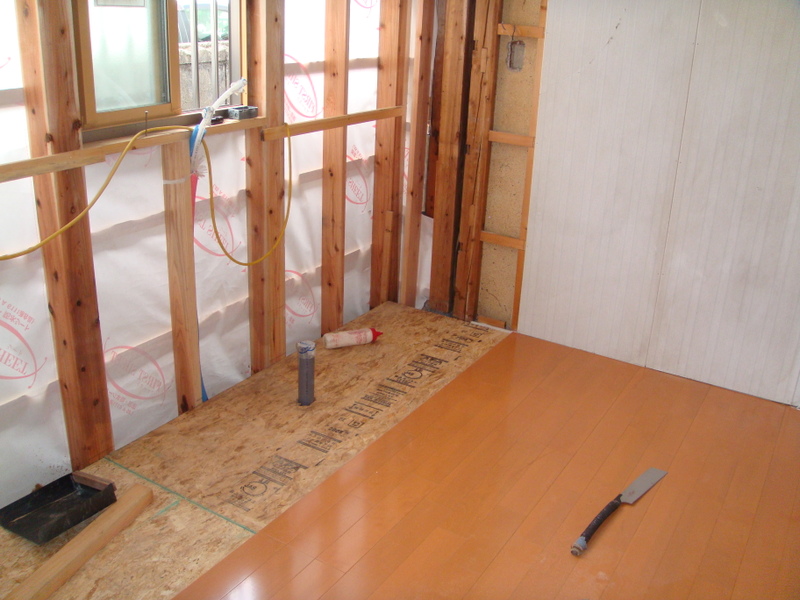 この間解体作業が行われた市内E様邸の水廻りリフォーム工事の現場では、床貼りが行われました![]()