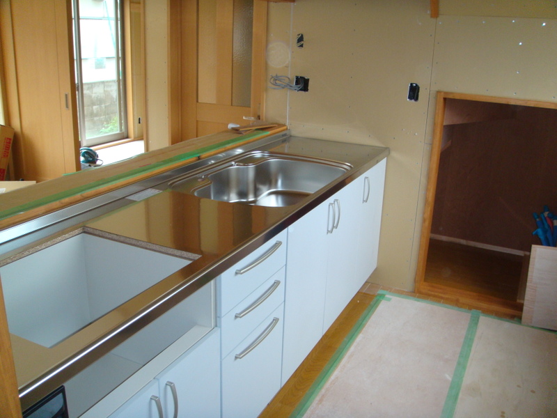 T様借家のリフォーム工事では、キッチンの取り付けが行われ、いつもですと設備屋さんに頼んでる作業なのですが、今回は大工さんが取付を行いました![]()