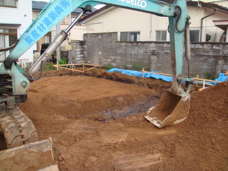 今日の作業は床掘りで、重機で基礎の外周部分が掘られました