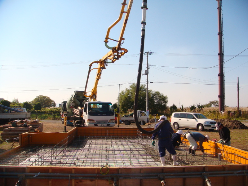 今日は午前中にJIOの配筋検査をパスし、天気も良く、程よく暖かい気温の中でコンクリートを打設する事ができました