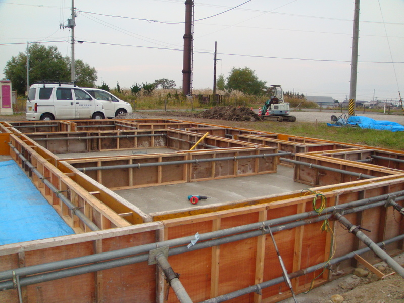 今日は昨日打設したベタ基礎の上に、立ち上がり部分の型枠を組んでいく作業です