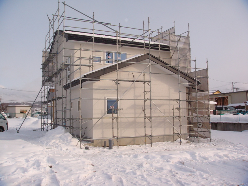 それから昨日は新築中の現場にて、クローゼットの棚の位置や神棚の位置について打ち合わせをしてたのですが、I様の奥様が仕上がったばかりの外壁を見て「外壁が想像以上に素敵な感じで、大変気に入りました