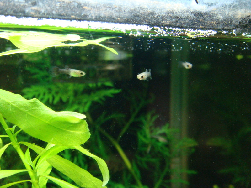 真ん中辺に集まっているのが今日産まれたグッピーの赤ちゃんで、左下に写っているのが3週間前に産まれたグッピーです
