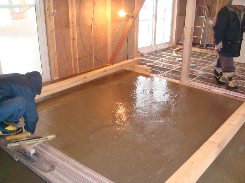 そんな雪の降りしきる一日でしたが、河東町I様邸新築工事ではオンドルエコノ工事の仕上げで、コンクリートが打設されました![]()