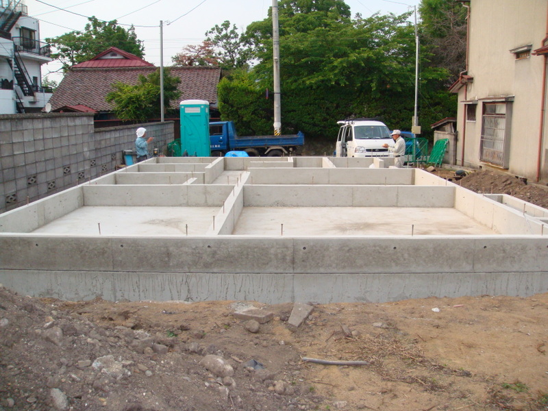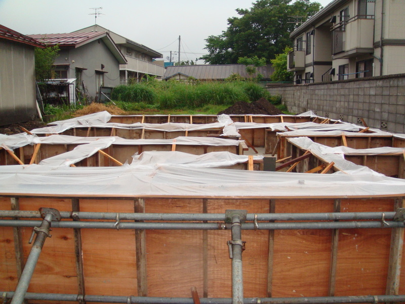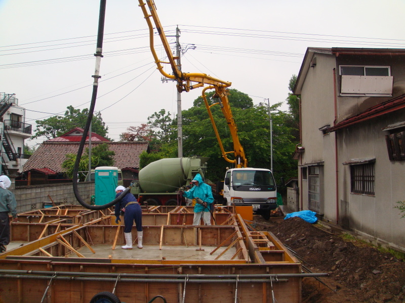 天候だけが心配だったのですが、夜中朝方に降った雨も朝には上がり(朝現場に来たら基礎の中はプールのようになってました