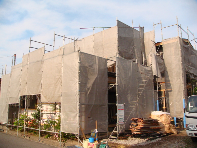 コンクリート打設後しばらくしたら天気が一気に崩れて少々雨が降りましたが、コンクリートは一気に乾くとひび割れをおこすので、絶妙なタイミングで雨が降ってくれたと思います![]()