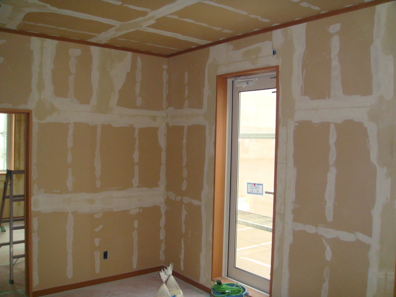 この所セミナーや研修などで中央の現場に行けなかったのですが、昨日からクロス屋さんが入って下地処理が始まってました![]()
