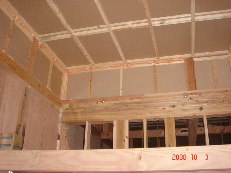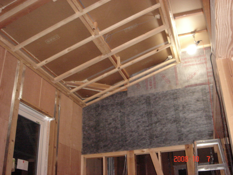 最後に中央では間仕切壁と天井のボード貼りが行われてました。やはりボードを貼ると今まで壁がなくて開放感があったものが一気に狭くなった感じがしますね。まぁ当たり前で仕方のない事ですが![]()