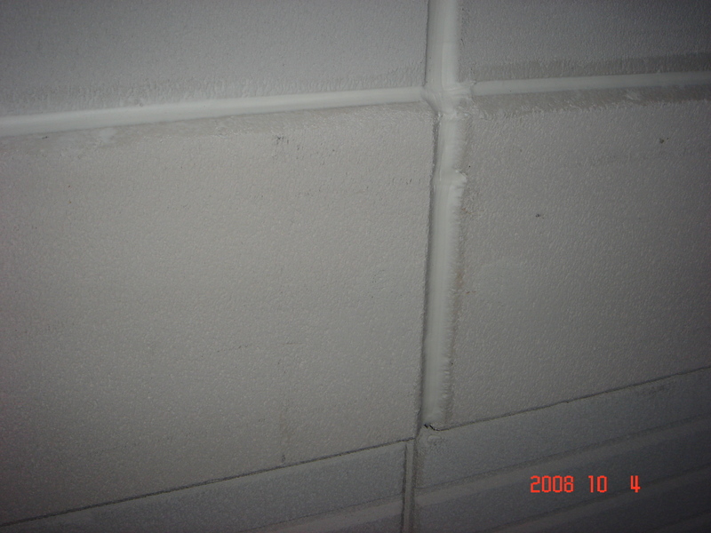 面積が大きいので今日はパワーボードの目地回りにシーリングされ(目地にある白い部分がシーリングです)、上半分ほどが終わりました。来週には残りの目地とサッシ回りにシーリングされます![]()