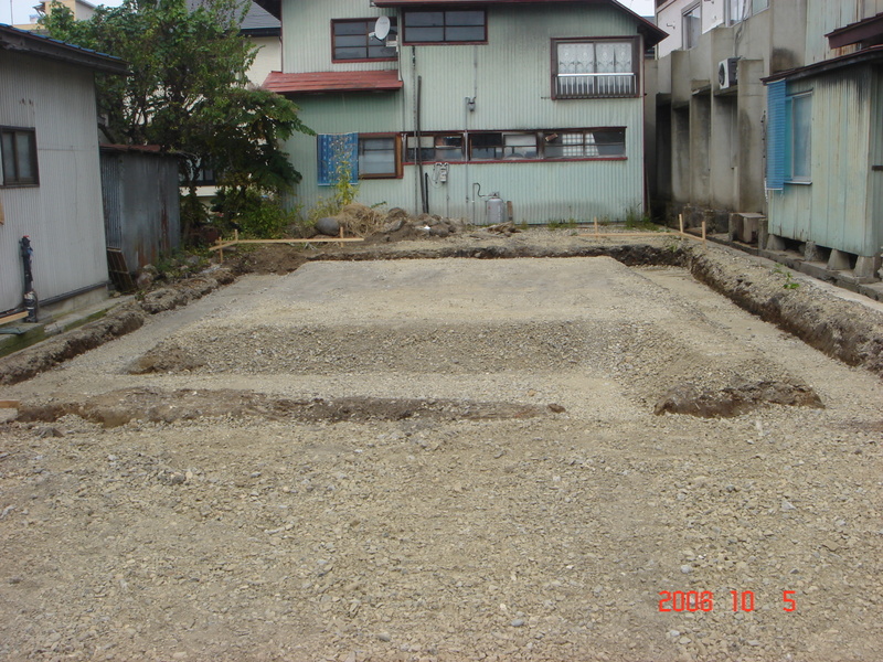 A様邸新築工事も中央同様、両脇が土地ギリギリに建てる為、床掘りも苦戦した後が伺えました![]()