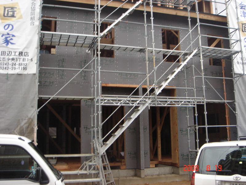 気密処理をしっかりやらないと後で結露の原因になってしまいます。こういった地味な作業は完成してしまうと隠れて見えなくなってしまう部分なので、興味がある方は是非現場へ見に来て下さい![]()