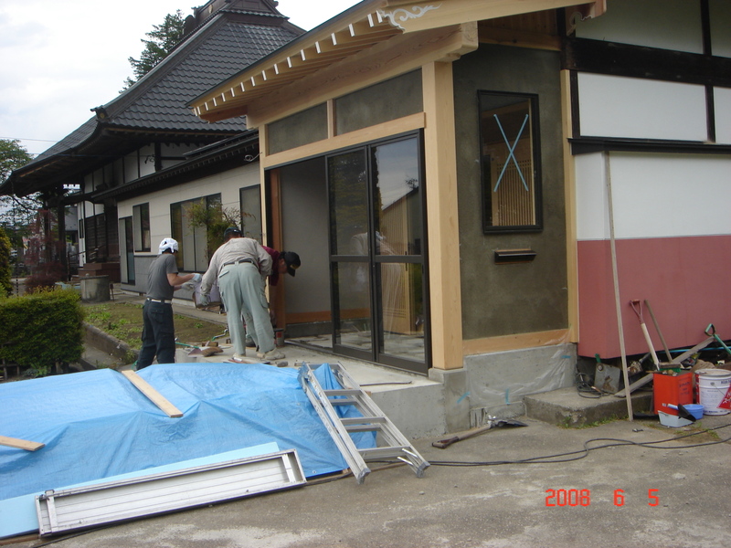 今日からH寺様の追加工事(今までの階段の1段辺りの高さが高くて、お年寄りが上りづらいと言う事だったので、段数を1段増やし1段辺りの高さを低くする工事です)で依頼された、本堂の階段改修工事が始まりました![]()