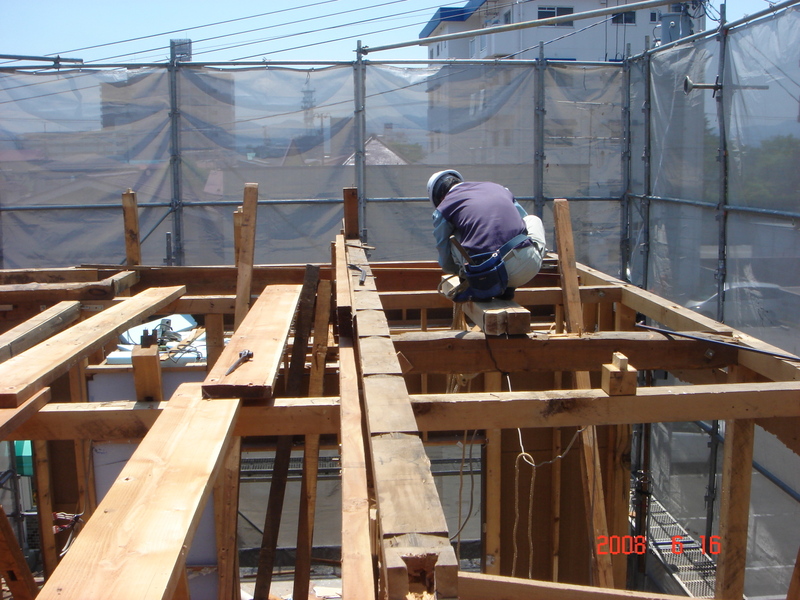 そう言えば、この前の地震の際大工さんが足場の悪い梁(幅12cm)の上で作業してたらしいのですが、骨組だけの建物の上はいつも揺れているので、まったく地震に気付かなかったそうです