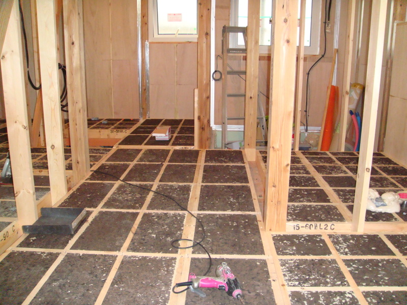 この間解体作業が行われた市内E様邸の水廻りリフォーム工事の現場では、床貼りが行われました![]()