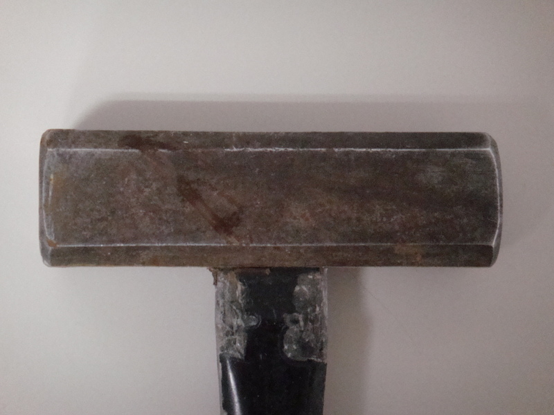 玄翁は片方が平面(写真左側)で、もう片方が曲面(写真右側)になっており、曲面の方は締め打ちに使います。これにより釘の回りをなるべく凹ませず、釘を奥まで打ち込む事が可能になります。